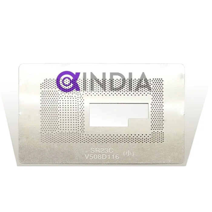 High-grade stencil designed for SR216, SR217, SR23C, SR23G, SR23L, and SR23Q ICs. Made from durable stainless steel that withstands direct heat applications. Precision hole design ensures accurate solder placement for CPU/GPU rework. Cost-effective solution for technicians performing motherboard repair.