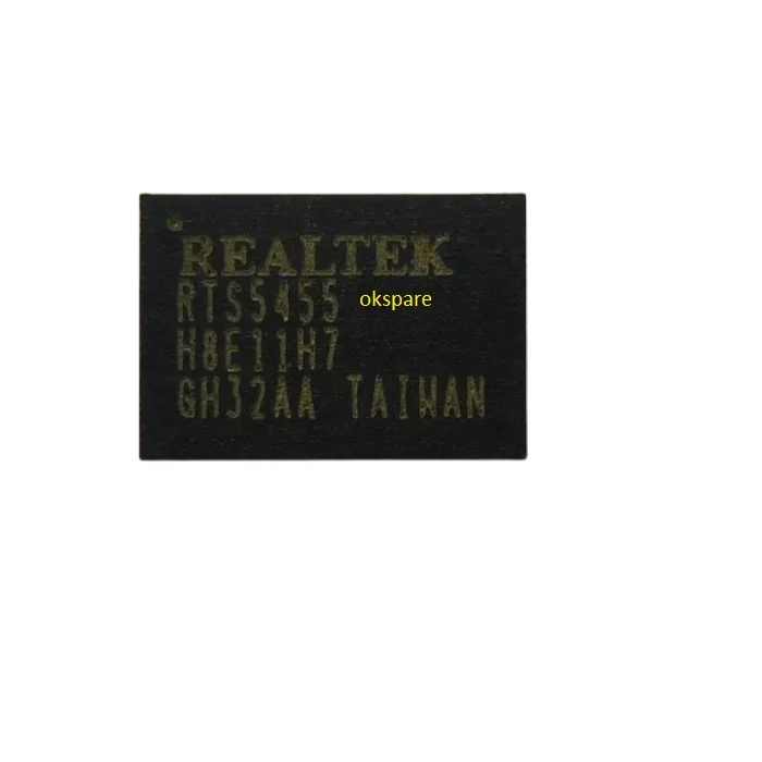 RTS5455 RTS5455-GR 5455 IC is a high-performance USB 3.1 Gen1 hub controller designed to provide multiple downstream USB connections with fast data transfer and intelligent power management. It offers full backward compatibility with USB 2.0 devices and supports USB Battery Charging v1.2, enabling efficient device charging. Integrated port power control, over-current protection, and low standby power make it ideal for modern USB hubs, docking stations, and embedded systems. Packaged in a QFN form factor and marked as 5455, this IC ensures stable operation and easy integration in compact designs.